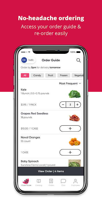 当社のモバイル アプリを使用すると、完全な製品カタログを検索し、注文ガイドを管理および更新し、必要なときに必要なものを購入できます。これは、お客様に気に入っていただける注文体験を提供するという私たちの取り組みの一環です。