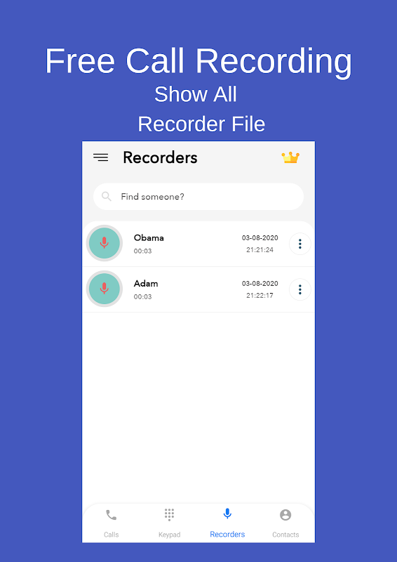 - Different recording modes by number, contact, non-contact or just selected contacts