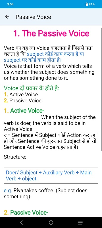 多くの学生は、受動態で混乱しています。彼らは声を正しく交換する方法を知りません。それがこのアプリが作成された理由です。このアプリから読んだら、他の場所で読む必要はありません。基礎から上級までのノートです。メモは非常に慎重に作成されています。このメモを読んだ後は、声に混乱が生じることはありません。