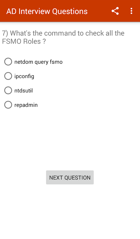 We have covered about 75 AD Interview Questions in this Android App but very soon we'll add some additional Windows Server 2012 and AD Interview Questions.