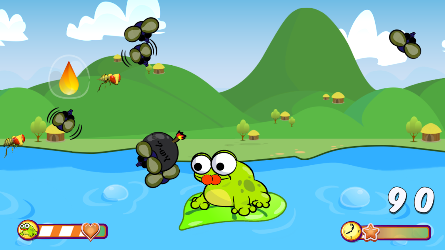 A free game from Ethiopia. Help the frog hunt insects and extend its life. Bees in the game will fire stings and player is expected to defend with the frog's tongue. You will get a bonus if a sting bounces back and kills an insect .
