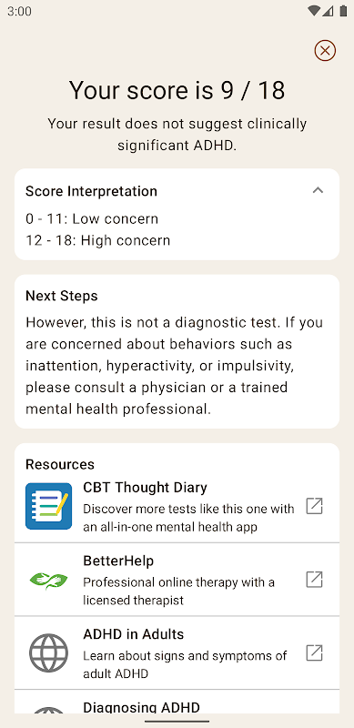 この ADHD テストは、ADHD の可能性について自分自身をスクリーニングするのに役立つように設計されています。このアプリは、Adult ADHD Self-Report Scale を使用しています。