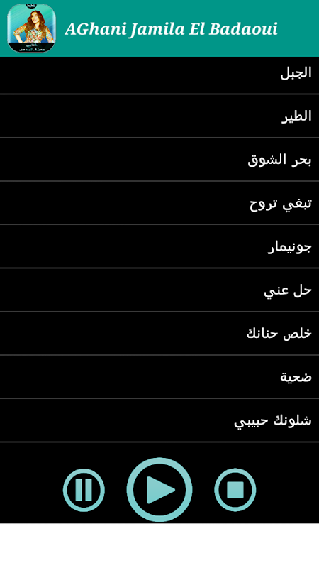 نقدم لكم هذا التطبيق للفنانة جميلة البدوي والتي شاركت في مجموعة من المسابقات منها استوديو2M ونجم الخليج و ستجدون في هذا التطبيق مجموعة من الاغاني الجميلة التي عرفت شهرة و نجاحا :