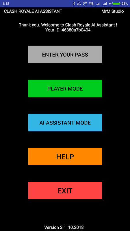 NOTICE: This is not a hack or cheat! This app uses image recognition algorithms and an AI (Artificial Intelligence) and runs outside Clash Royale so you do not fear that your account is banned by Supercell.