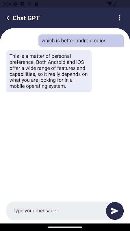 私たちの Android アプリは、OpenAI によって開発された高度な言語モデルである ChatGPT の力を利用しています。このアプリを使えば、考えられるあらゆるトピックについて ChatGPT と会話できます。特定のテーマに関する情報を探している場合でも、カジュアルな会話をしたい場合でも、ChatGPT でできることを確認したい場合でも、このアプリを使用すると簡単に楽しく作業できます。