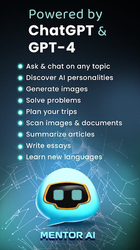 「Mentor AI」と共にAIの未来を受け入れましょう - Google Playストアで利用可能な最も洗練された無料のチャットボットです。今すぐアプリをダウンロードし、ChatGPTとGPT-4の力に基づいた最もインテリジェントなチャットボットとチャットを始めましょう!