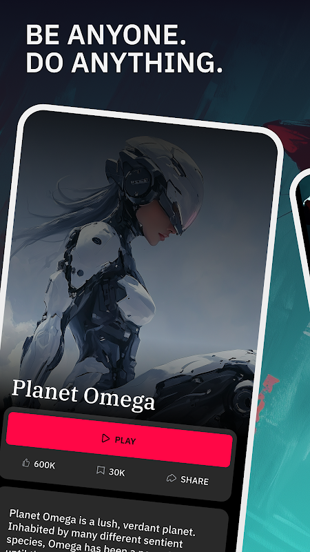 - SF、ロマンス、ファンタジー、ホラーなど、あらゆるジャンルで、他のプレイヤーが書いた数千ものシナリオを発見。あるいは、自分でシナリオを作成して共有しましょう!