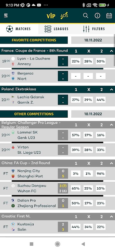 • 安全なヒントのための PRO VIP セクション - 当社の専門チームによって分析および投稿されました
