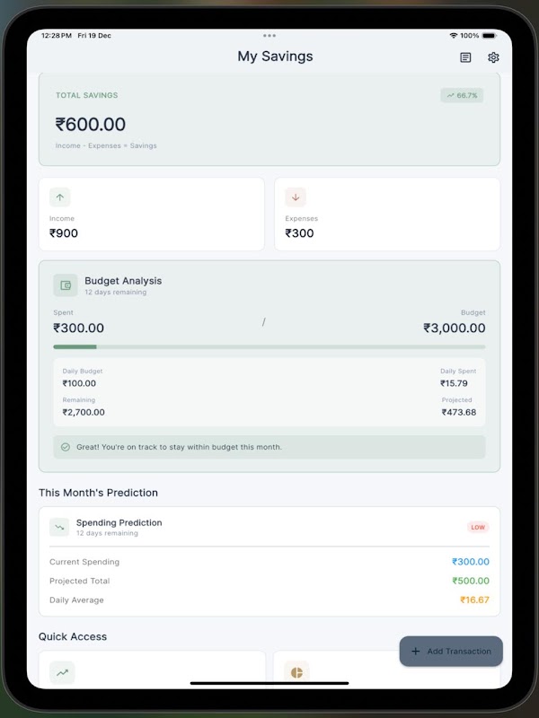 一般的な支出トラッカーとは異なり、Savings Tracker AIは人工知能(AI)を活用してあなたの財務習慣を理解し、パーソナライズされた推奨事項を提供します。すべてのヒントは、お客様の状況、予算、支出パターンに合わせてカスタマイズされます。