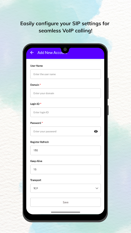 ⚙️ SIP設定:SIPアカウントを簡単に設定し、数分で通話を開始できます。