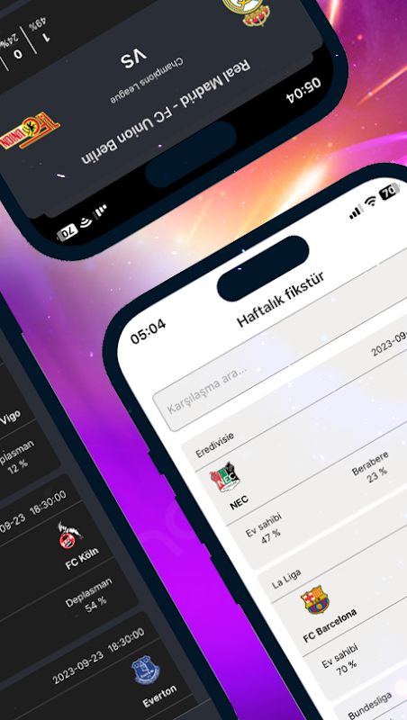 人工知能のサポートにより、サッカーの試合の予想される結果を分析し、パーセンテージの結果を返します。人工知能で分析された毎週の試合の予測を表示します。