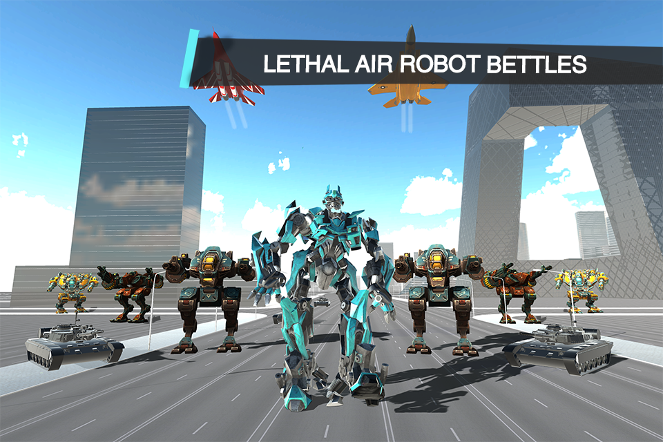 あなたは空のロボット変換ゲームの王冠である実際の戦場でのタンク破壊を愛していますか?それでは、飛行機のトランスフォーメーションゲームをプレイする必要があります。これは、戦闘戦略と複雑な計画の組み合わせでロボット変換ゲームのボットの間で衝突を勝ち取ることです。実際のロボットに割り当てられた任務に従って、戦闘ロボットとして飛行ロボットを訓練し、将来のロボットゲームでジェット機と飛行機を変換する技術を習得する必要があります。メカトロロボットと変身機を使った都市戦闘での空中戦闘でのジェットロボットゲーム&飛行ロボット変換ゲームを楽しんでいるなら、ジェットと変形ロボットを使ったこの戦闘ロボットゲームは、他のロボットとは違ってボットを倒すスキルロボット格闘ゲーム。この飛行機のロボットシミュレータの航空機、航空機、飛行機の飛行と飛行のボットは、最高のロボットゲームのカテゴリにこれを加える飛行と射撃のための滑らかなコントロールを持っています。現実的な物理学を備えたジェットロボットシミュレータと、空力戦争と戦うためのフライボットの未来モデルは、変形ロボットゲームの最も優れたものよりはるかに優れています。すべての未来的な戦いのすべてにおいて、敵のストライキに対して都市を守るために、空中ロボットの戦士として登場する。