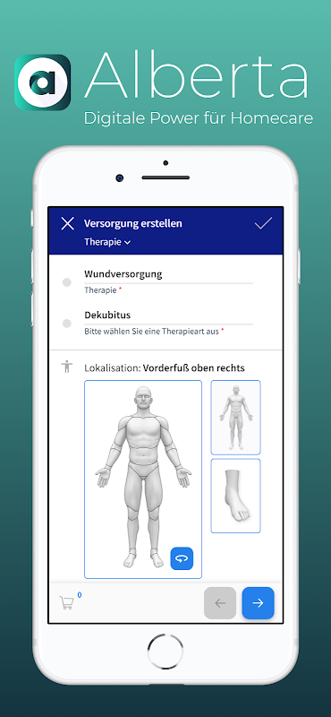 •ドキュメント:Alberta®を使用すると、健康保険会社と創傷ドキュメントの両方のデジタルドキュメントとフォームをキャプチャできます。現場で患者データを作成し、直接オフィスに送信します。また、ドイツのすべての医療機関に無料でアクセスできます。