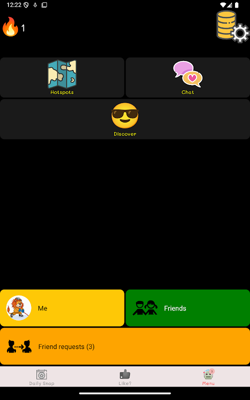 いいね?: 写真を撮って送信してください。友達は右にスワイプすると「いいね!」、左にスワイプすると「嫌い」、上にスワイプするとスキップできます。