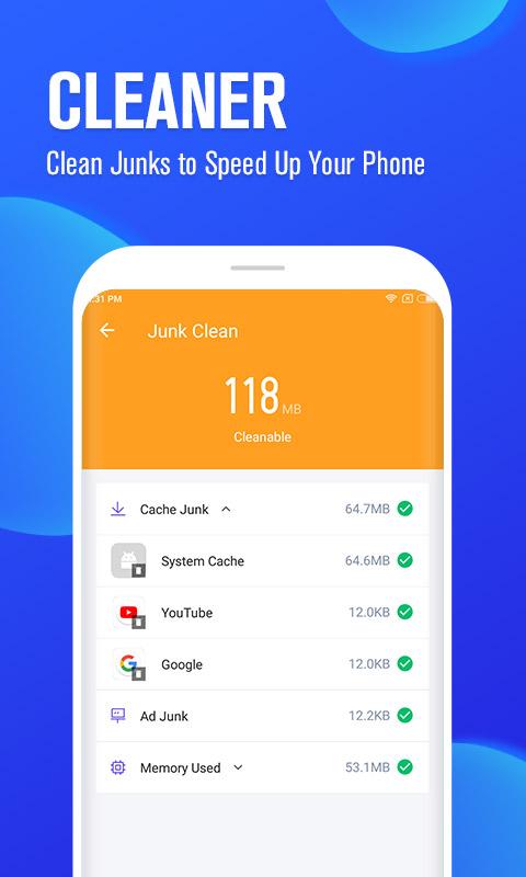 - Deeply clean your phone's junk files, ad junk, apk files and memory cache.