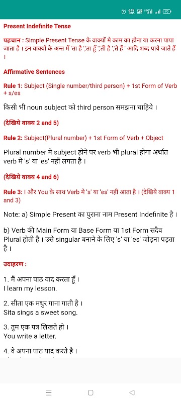 このヒンディー語のオフライン英語文法アプリは、簡単な説明を使用してすべての英語学習トピックをカバーしており、ヒンディー語と英語で利用できる多くの例があります。