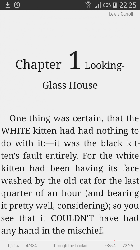 単語や文章の翻訳に外部辞書を使用できます。 fb2およびtxtファイルのタイプミスを修正する機会があります。アプリケーションは、20言語でハイフネーションを調整できます。昼/夜のプロファイルは、一日中いつでも快適に読むことができます。カスタムフォント設定。カスタムカラー設定。横向きの2ページモードへの自動切り替えを伴う1ページおよび2ページモード。 OpenGLページングアニメーション。自動波「波」。テキスト内のナビゲーション:パーセント、ページ、テキストの最初/最後、次/前の章。短いタップと長いタップ、ジェスチャー、2本の指でのジェスチャー用の9つのタップゾーン。テキストを「ピンチ」でサイズ変更して、ボタンのアクションを割り当てます。テキストの後ろに時計が表示されます。画面のバックライトを保持する機能(最大10分間非アクティブ)。ネットワークまたはファイルシステムを介して読み取り位置を同期します。