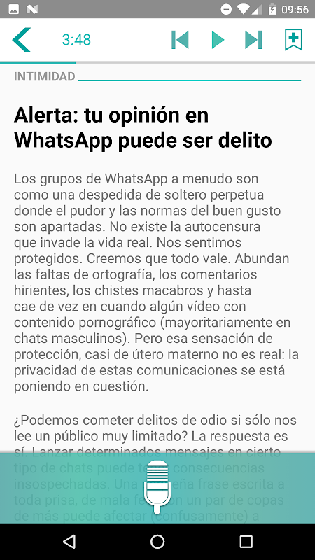 あなたは今日の意識になりたいが、あなたは携帯電話の画面を見ることができませんか?このアプリは、あなたのコマンドに耳を傾け、声を出してオンライン新聞グループUnidad社説(エル・ムンド、マルカと拡張)のカバーストーリーを読み込みます。重要:このサービスは、革新的な音声認識技術や人工知能を使用し、「ベータ」フェーズ(実験)のままです。したがって、それは不完全で不安定製品です。あなたは、サービス品質の中断や障害を被る可能性があります。保証なしであるように、それは、自分の意見や提案のためにそれを試してに興味を持ってすべてのユーザーに提供されます。