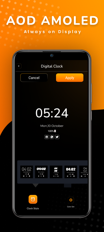 Always On Display - Amoled アプリを選択すると、デバイスに触れることなく、時計、日付、現在の天気、音楽コントロールなどのすべての詳細を AMOLED 常時表示で表示できます。