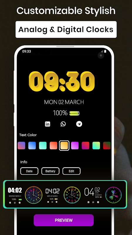AMOLEDアプリには、さまざまな種類のアナログ時計とデジタル時計があります。
