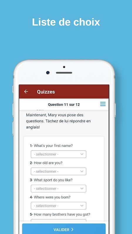 Améliorer mon anglais est un jeu de quiz gratuit en anglais conçu pour améliorer votre orthographe, votre grammaire et éventuellement découvrir de nouveaux mots en anglais. !