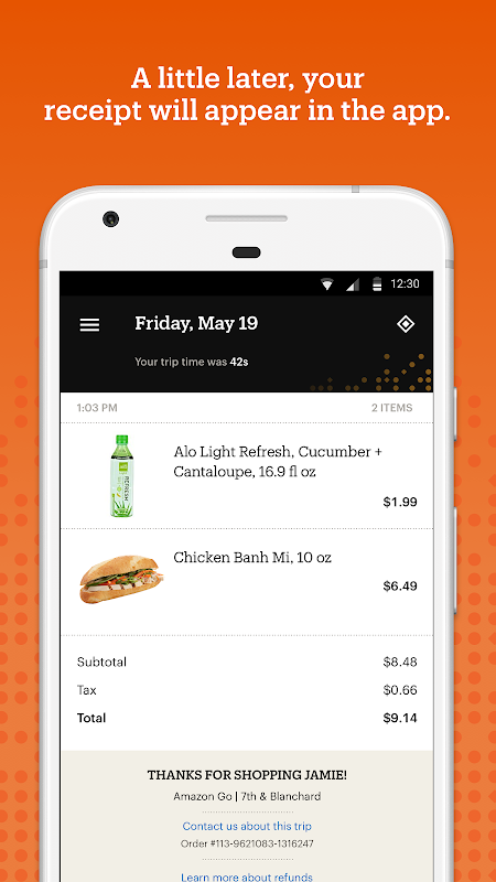 Get the Amazon Go app to shop at Amazon Go, a new kind of store featuring Just Walk Out Shopping. No lines, no checkout—just grab and go!