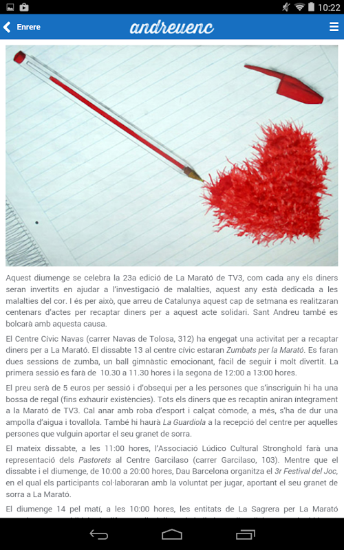 Andreuenc és el diari electrònic de Sant Andreu de Palomar, creat per un grup d'emprenedors compromesos activament amb el nostre poble. Hi trobaràs tota l'actualitat de societat, política, comerç, cultura, esport i molt més. Descarrega't l'aplicació oficial d'Andreuenc i gaudeix del diari en el teu dispositiu mòbil.