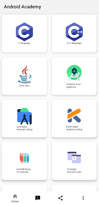 Android Academyは、Androidアプリの開発とJavaプログラミングのスキルを学ぶためのステップバイステップの手順を含むインタラクティブなレッスンを備えています。レッスンに従って、エキスパートになり、自分のアプリプロジェクトで学んだことを適用してください。