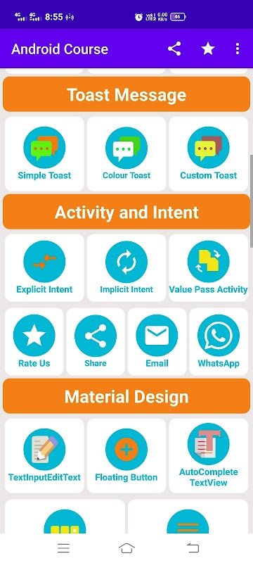 開発者は、このandroidコースアプリからjavaおよびxmlコードを見つけることができます。すべての有用なコードをコピーして、androidプロジェクトに貼り付けることができます。