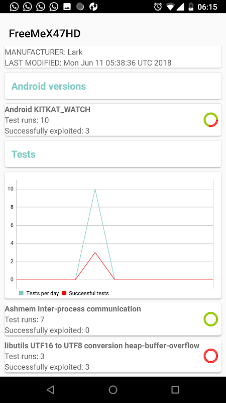 This is where Android Exploits comes in: We right now offer some latest exploits to be tested on your device. That means, you're able to execute some tests in order to check if your device is vulnerable. The included exploit terminal gives some details about the exploit progress and helps to understand what is happening in the background.
