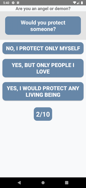 あなたは天使か悪魔ですか? は楽しくシンプルなゲームで、いくつかの簡単な質問に答えて、あなたが天使か悪魔かを調べます。