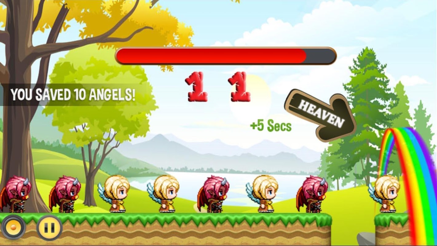 天使を天国に、悪魔を地獄に送らなければなりません。間違って悪魔を天国に送った場合、悪魔が戦争に勝ちます。10人の天使を天国に送った場合、プレイできるのはあと5秒です。50人の天使を天国に送り、100人の天使を天国に送ることができれば、より多くの時間を稼ぐことができます。この素敵なゲームであなたの速さを見てみましょう!お楽しみください!