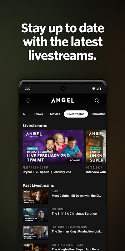 Angelでは、「The Wingfeather Saga」や「Tuttle Twins」といったオリジナルシリーズから、「Sound of Freedom」、「Cabrini」、「Homestead」といった映画、そして「Dry Bar Comedy」のようなユニークなコメディ番組まで、感動的な受賞歴のある映画やテレビ番組をお楽しみいただけます。毎週新しいエピソードとタイトルが追加され、スタンドアップコメディスペシャル、テレビ番組、アクション、ドラマ、信仰映画など、様々なジャンルをお楽しみいただけます。私たちの映画とテレビ番組のエピソードは、私たちを高揚させ、刺激し、感動させることを目的としており、共有し、大切にされるべきものです。