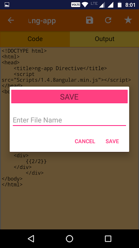 また、ユーザーは、参考のために、後の回で使用することができますタイトルバーに保存アイコンをクリックしてそのコードを保存することができます。