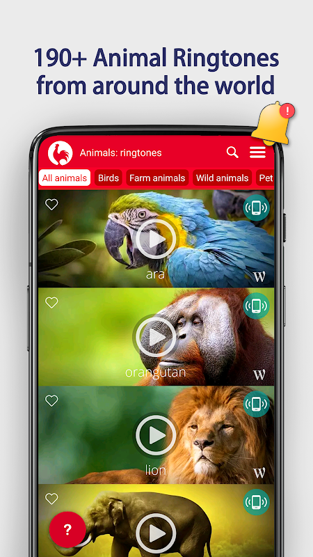 携帯電話やタブレットのためのの着メロ、アラームや通知/ SMSなど190匹の動物