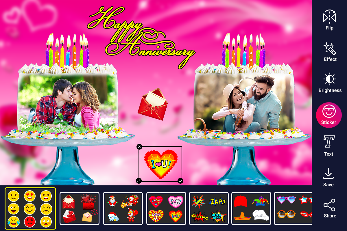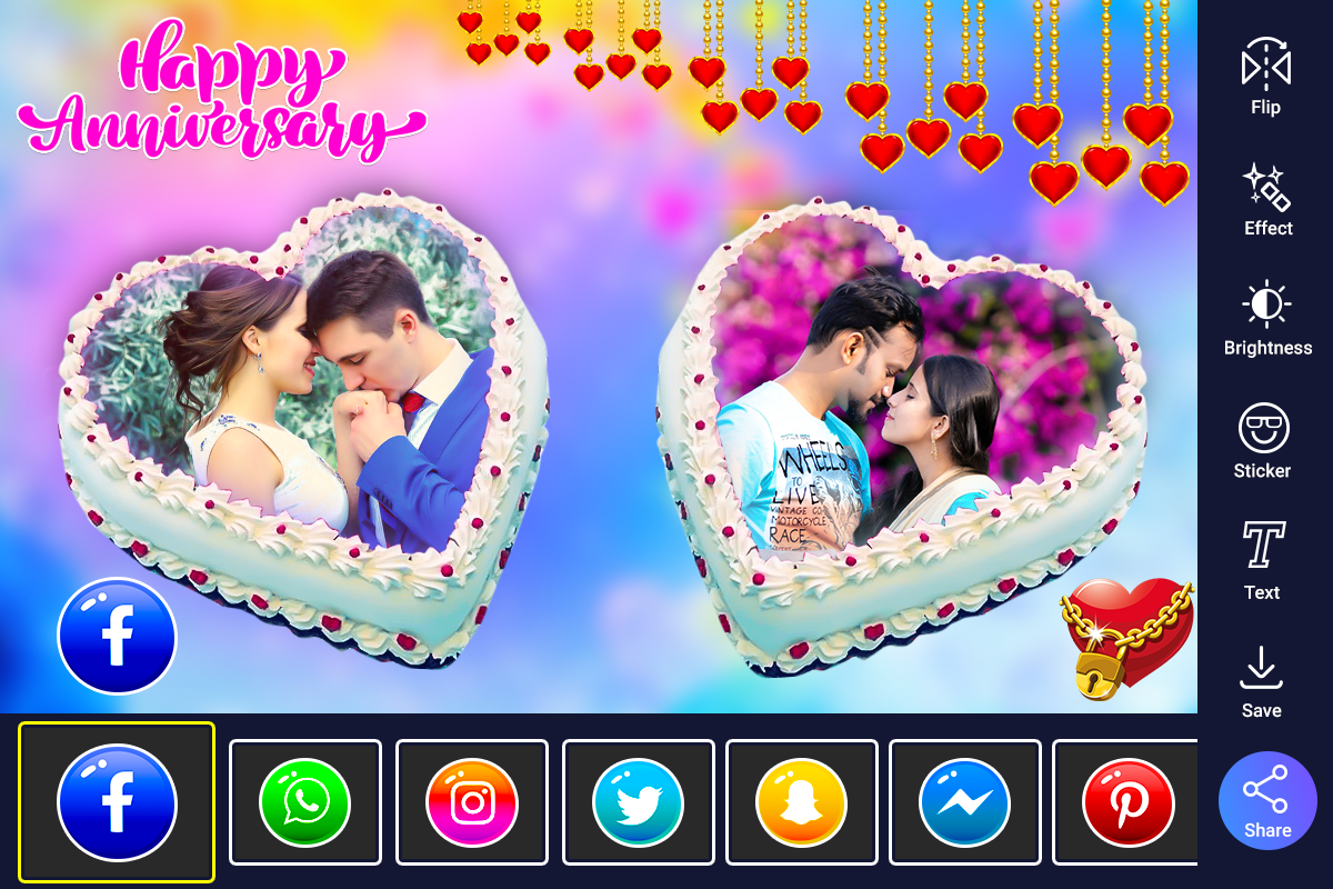 Anniversary Cake Dual Photo Framesアプリで特別な記念日写真を作成します。