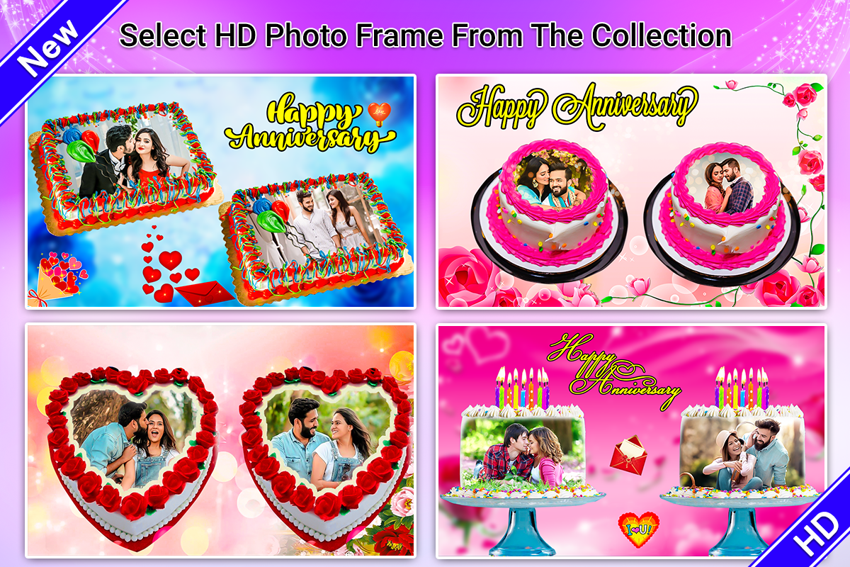 アニバーサリーケーキフォトフレームの幅広いコレクションのいずれかを選択して、素敵なアニバーサリーケーキパーティーの写真を撮影してください。美しいものも含まれています。アプリを使用して、思い出に残る瞬間、記念日のケーキの写真、ロマンチックな写真アルバムや家族の写真アルバムのロマンチックな写真をキャプチャします。