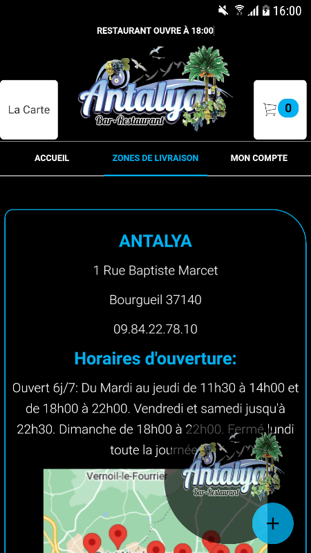 ANTALYA Android アプリケーションを使用すると、アプリケーションを介してオンラインまたは電話で注文できます。メニューをご覧になり、商品をお選びください。