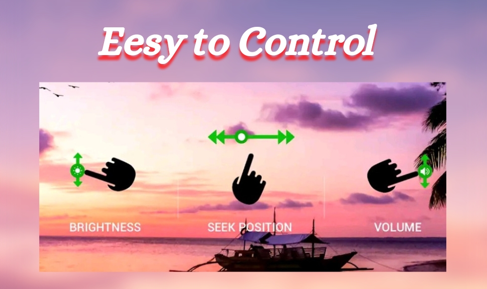 * Brightness, Seeking/Skip, Landscape / Portrait Mode, Volume