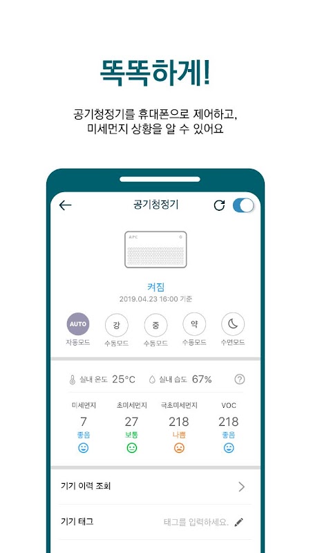 APCのIoT空気清浄機AC-100S / AC-100D製品のためのAPPです。 空気清浄機!今便利に管理してください〜