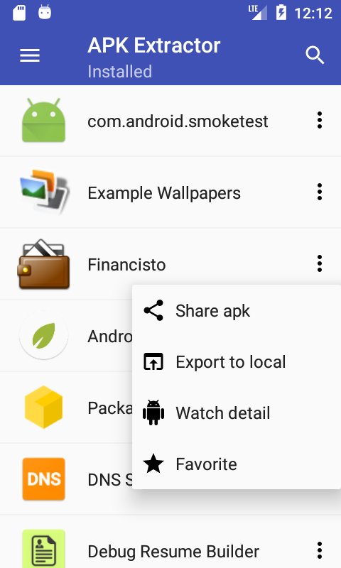 インストールしたアプリをAPKとしてエクスポート、バックアップ、共有するのに役立ちます。
