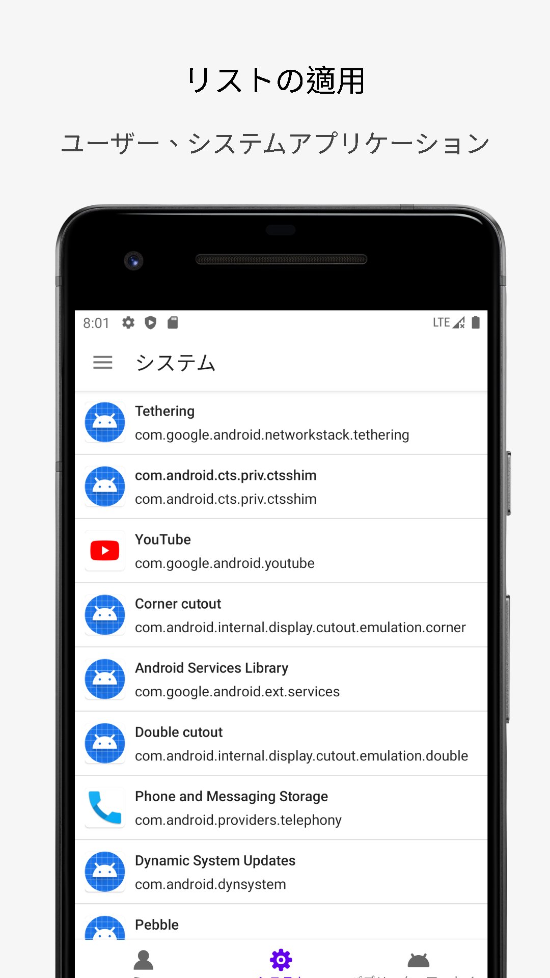 2.apk情報、app情報、アプリケーションパッケージ名表示、インストール日、アップグレード日、占有スペース、バージョン番号、インストール場所、アプリケーション使用統計、フロントとバックグラウンドサービス、ブロードキャストサービス、アプリケーション権限表示、アプリケーション権限管理、ハードウェア要件照会、、APKリソース検索、証明書署名md 5、プロセス名、UID、署名情報詳細照会など。