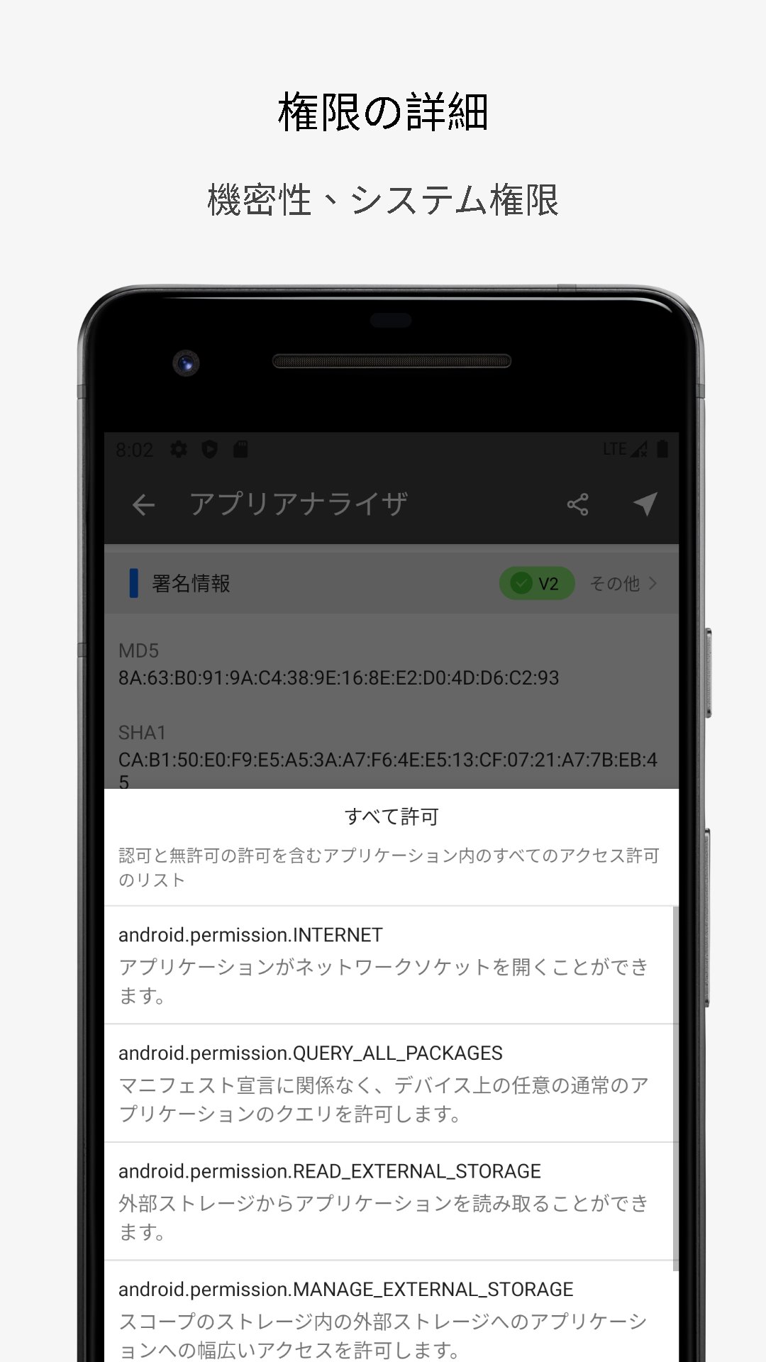アプリケーションアナライザ APK 情報