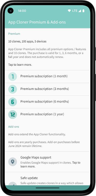 App Clonerのプレミアムライセンスとアドオンのロックを解除する