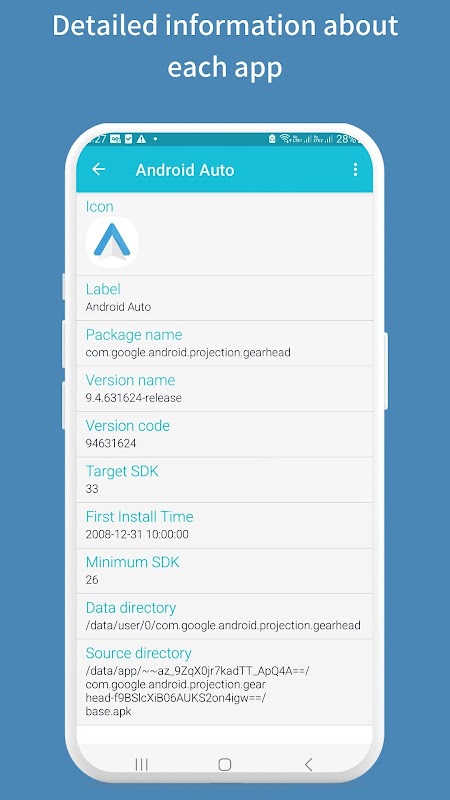 デバイスにインストールされているすべてのアプリケーションの詳細を検査します。