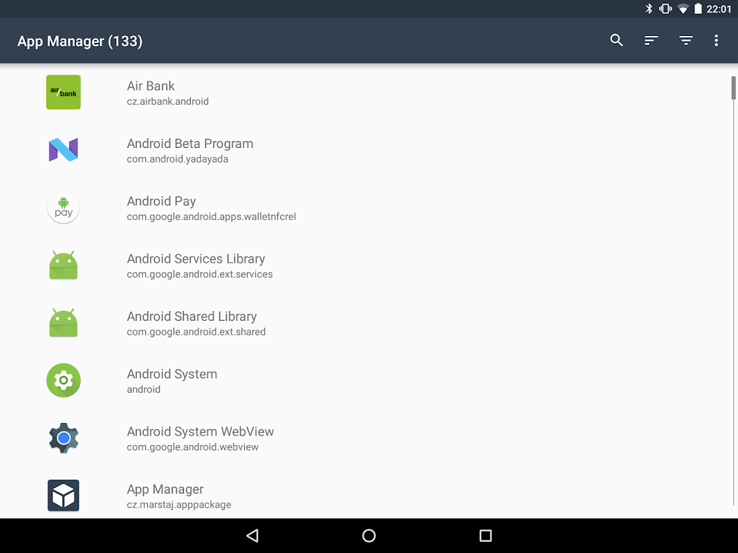 アプリマネージャを使用すると、時間、バージョン、パッケージ名だけでなく、大きさや場所、そのデータを格納し、アプリケーションの権限を表示インストールして更新することができます。お使いの携帯電話にプリインストールされており、Playストアからダウンロードしたものをシステムのアプリケーションを参照してください。簡単に開いPlayストアリストは、不要なアプリやバックアップ、それらのインストールファイル(APK)をアンインストールしますので、後でいつでも後でそれを再インストールしたり、友人と共有することができます。