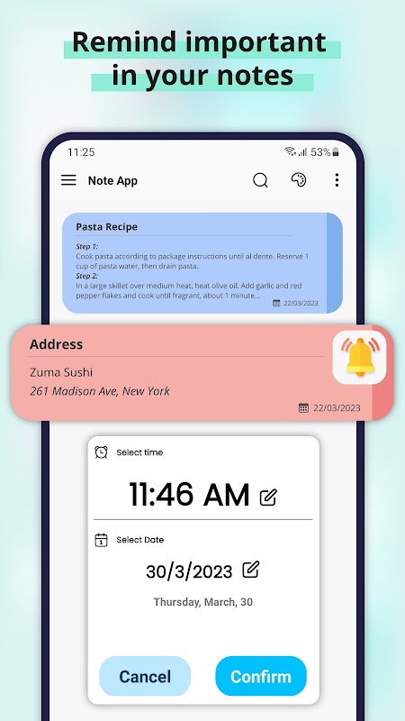 数回タップするだけで新しいメモを作成し、さまざまなフォントや色でカスタマイズし、フォルダーやカテゴリに整理します。アプリの検索機能により、キーワードやフレーズで特定のメモを簡単に見つけることができます。 To Do リストやメモにリマインダーを設定して、重要なタスクや締め切りを逃さないようにすることもできます。
