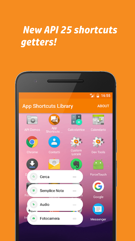 This library have features of App Shortcuts Android 7.1 Nougat, and available from API 14!