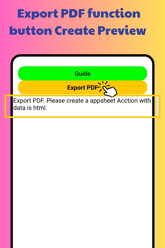 PDF のエクスポート ボタン: プレビューを生成し、PDF を保存して携帯電話にエクスポートするための画面を開きます。