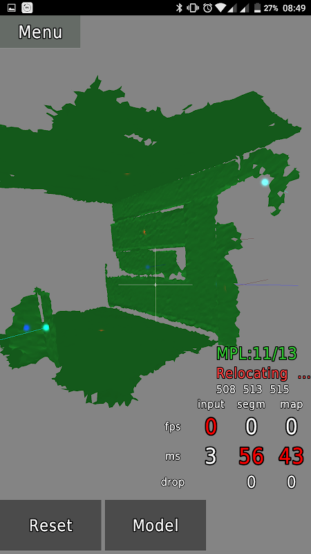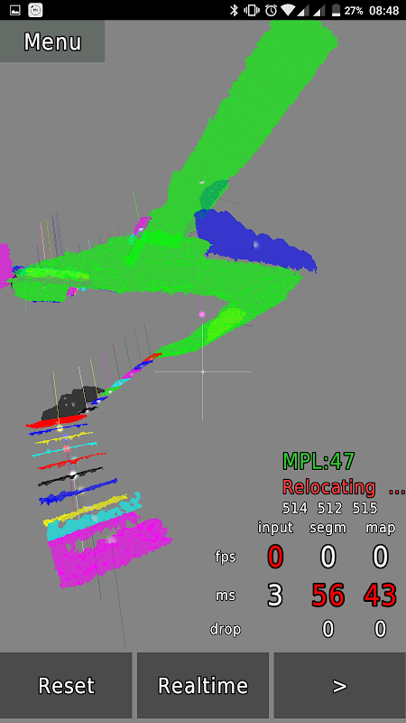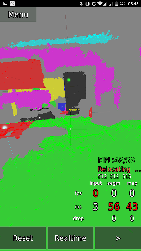 セグメンテーションと平面マージアルゴリズムは、8つのコアのPC上で120のFPSを達成することができます。レノボPhab 2デバイス上では、50 fpsの周りを行います。